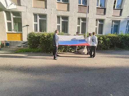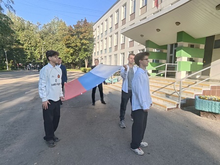 В корпусе 817 почётное право установить флаг Российской Федерации принадлежало ученикам 10 «Б» инженерного класса - Ивану, Леониду, Александру, Максиму и Владиславу.