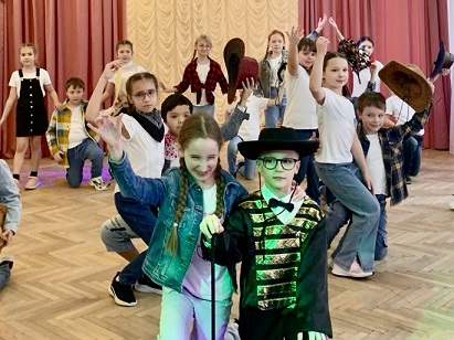 Вместе с классным руководителем они подбирают костюмы и ставят номера. Учителя английского языка Алексеева Анна Ивановна и Пашаева Ирина Эльдаровна разучивают с детьми слова песни, а учитель музыки Никулина Татьяна Игоревна помогает с музыкальным оформлением номера.