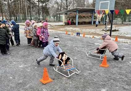 Это самое запоминающееся событие при проведении Недели «Зимние игры и забавы», ведь ребята вдоволь наигрались. Инструктор по физической культуре Галицкая Ю. К., воспитатели старшего дошкольного возраста Никитина С. В., Саминина Л. Г. и Романова Н. Н. провели игры-соревнования: «Эстафета с санками», «Эстафета с клюшкой и шайбой». Дети всех возрастов играли в «Ледяные ворота, «Холодные льдинки» и др.