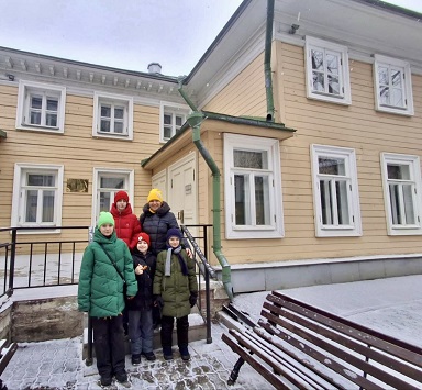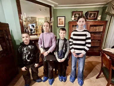 Дом-музей Василия Львовича Пушкина, дяди Александра Сергеевича, окунул ребят в атмосферу 19 века. Они узнали, что для бесед для музицирования была отдельная комната, выяснили, кто такой камердинер и какова его роль, а также познакомились с одеждой того времени и тем, что Василий Львович тоже писал стихи.