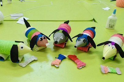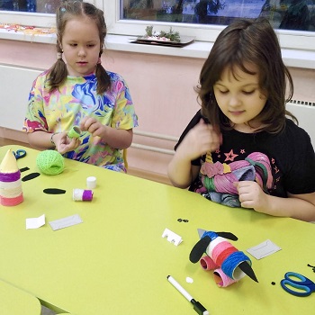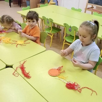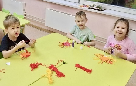 Ребята смастерили себе четвероногого друга из пряжи и втулок от бумаги. А дети младшего возраста зажгли свое собственное солнышко.