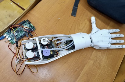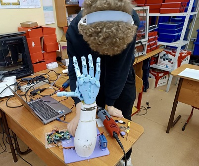 3. Преобразование данных в команды управления: программа на Python, которую написали ребята, преобразует данные о жестах в команды управления для сервоприводов роботизированной руки. Например, сгибание пальца оператора соответствует сгибанию соответствующего пальца роботизированной руки.