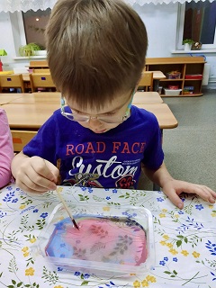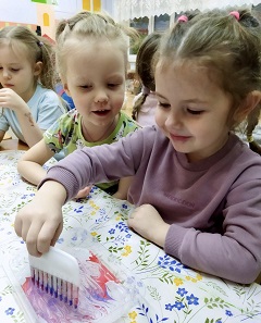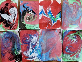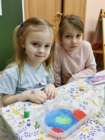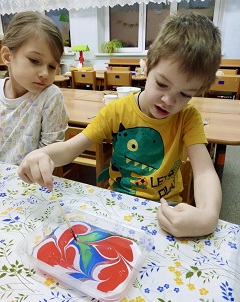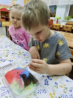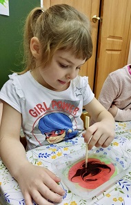 Вот и мы с ребятами решили стать древними мастерами. В процессе работы нельзя предугадать, как растекутся краски, поэтому получились невероятные картины, которые повторить невозможно.