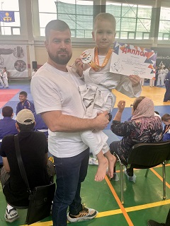 Михей завоевал медаль за 2 место на своих первых соревнованиях по дзюдо.