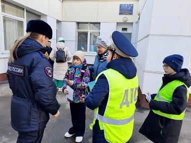 Ребята раздавали памятки с правилами дорожного движения, а юным пешеходам дарили яркие светоотражающие фликеры – залог безопасности в тёмное время суток!