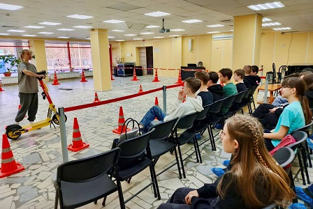 В рамках теоретического блока ребята узнали о принципах работы электрического самоката, особенностях его эксплуатации и технического обслуживания. Они также вспомнили основные правила дорожного движения, скоростной режим и культуру поведения на дороге.