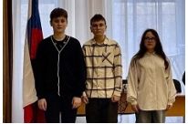 Почётное право установить флаг Российской Федерации было доверено ученикам 6 «Ц» класса – Михаилу, Полине и Сергею.